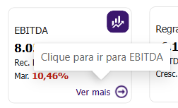 Este botão direciona para a página intitulada EBITDA. Os usuários podem explorar o desempenho operacional da empresa, excluindo os efeitos das decisões financeiras e contábeis.
