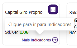 Clicar neste botão abre a página intitulada Indicadores, onde os usuários podem visualizar várias métricas financeiras-chave que avaliam diferentes aspectos da saúde financeira da empresa.