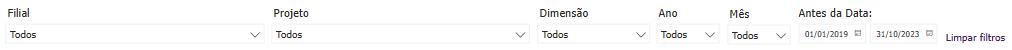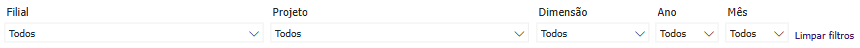 Para limpar todos os filtros aplicados e retornar à visualização completa dos dados, utilize o botão "Limpar filtros" localizado no lado direito dos slicers. Este botão remove todos os filtros, proporcionando uma visão geral abrangente dos dados.