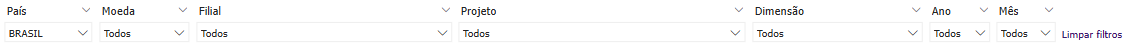 Para garantir que todas as moedas estejam disponíveis para visualização dos dados, este filtro permitirá a escolha da moeda. Há uma opção padrão que é a moeda "local" ou "doméstica" para o negócio, bem como as opções de moeda para os países em que há operações.