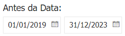 Este filtro está disponível apenas na página Indicadores e permite ao usuário ajustar o visual para mostrar dados entre duas datas. Isto simplifica a comparação e análise dos indicadores durante qualquer período de tempo necessário.