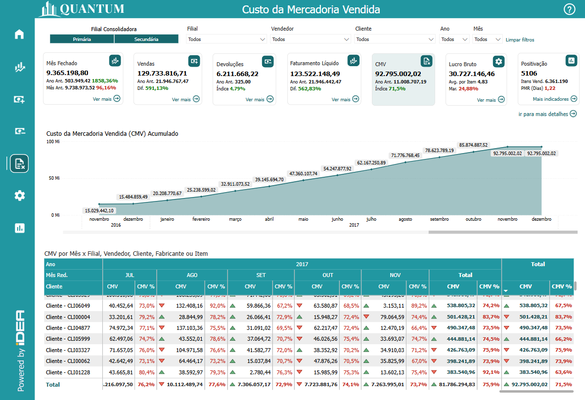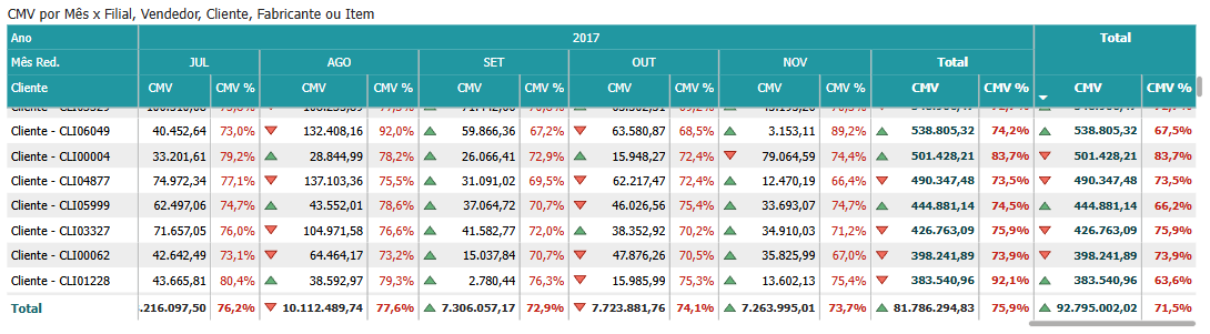 CMV por Mês x Filial, Vendedor, Cliente, Fabricante ou Produto¶