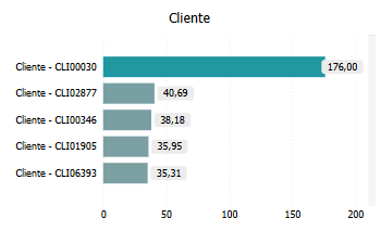 O gráfico de barras exibido no Painel Indicadores oferece uma análise detalhada do desempenho dos diferentes clientes da empresa. Esta visualização organiza as métricas de forma clara e intuitiva, com barras que representam o desempenho de cada cliente. Cada barra corresponde a um cliente específico, permitindo uma comparação direta entre eles e a análise das variações no desempenho ao longo do tempo. A visualização das métricas por cliente é essencial para identificar quais clientes estão gerando mais receita, quais enfrentam maiores desafios e como eles se comparam entre si.