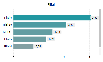 Além disso, o gráfico de barras é filtrável usando o Botão para Seleção. Ao clicar em um botão específico, o gráfico ajusta automaticamente as barras para mostrar as informações detalhadas relacionadas ao indicador selecionado. Essa funcionalidade permite que os usuários concentrem-se em um aspecto particular do desempenho das filiais, proporcionando uma análise mais aprofundada e facilitando a comparação entre diferentes indicadores e períodos.