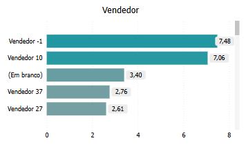 Além disso, o gráfico de barras é filtrável usando o Botão para Seleção. Ao clicar em um botão específico, o gráfico ajusta automaticamente as barras para mostrar as informações detalhadas relacionadas ao indicador selecionado. Essa funcionalidade permite que os usuários concentrem-se em aspectos específicos do desempenho dos vendedores, proporcionando uma análise mais aprofundada e facilitando a comparação entre diferentes indicadores e períodos.