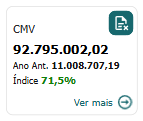 Botão "Ver mais", quando clicado, este botão leva o usuário à Painel Custo da Mercadoria Vendida. Quando o cartão já corresponde à página atual (ou seja, o usuário já está na página de Custo da Mercadoria Vendida), o botão "Ver Mais" não é visível, e o cartão é destacado.