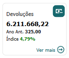 Botão "Ver mais", quando clicado, este botão leva o usuário à Painel Devoluções. Quando o cartão já corresponde à página atual (ou seja, o usuário já está na página de Devoluções), o botão "Ver Mais" não é visível, e o cartão é destacado.