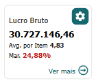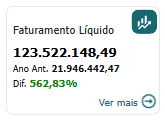 Botão "Ver mais", quando clicado, este botão leva o usuário à Painel de Faturamento Líquido. Quando o cartão já corresponde à página atual (ou seja, o usuário já está na página de Faturamento), o botão "Ver Mais" não é visível, e o cartão é destacado.