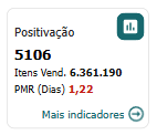 Botão "Mais indicadores", quando clicado, este botão leva o usuário à Painel Indicadores. Quando o cartão já está na página de Indicadores (ou seja, o usuário já está visualizando a página de Indicadores), o botão "Mais indicadores" não é visível, e o cartão é destacado. Na página de "Indicadores", você pode encontrar os seguintes indicadores: