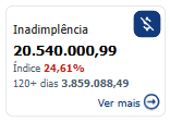 O botão "Ver mais", quando clicado, direciona o usuário para a Painel Inadimplência. Se o cartão já estiver associado à página atual, ou seja, o usuário já estiver na página de Inadimplência, o botão "Ver mais" não será exibido, e o cartão será automaticamente destacado, proporcionando uma navegação mais intuitiva.
