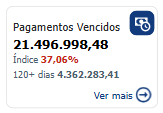 O botão "Ver mais", ao ser clicado, direciona o usuário para a Painel Pagamentos Vencidos. Se o usuário já estiver na página correspondente, o botão "Ver mais" não é exibido, e o cartão é automaticamente destacado para indicar que ele está visualizando as informações corretas.
