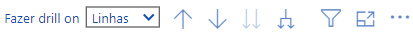 Neste relatório, os ícones de cabeçalho mais úteis são "Fazer drill up" e "Ir para o próximo nível na hierarquia", que permitem alternar facilmente entre diferentes níveis de dados, como cliente ou projeto.