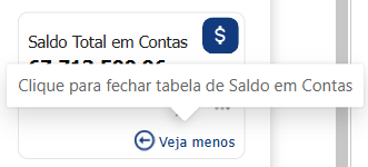 Há um botão exclusivo "Ver mais" que tem sua própria ação, e ele é encontrado na caixa intitulada Saldo Total em Contas. Ele é encontrado na extrema direita de cada painel e abrirá uma tabela para o Saldo por Conta. Quando esta tabela é aberta, o botão "Ver mais" é substituído por "Veja menos", permitindo que a tabela seja fechada.