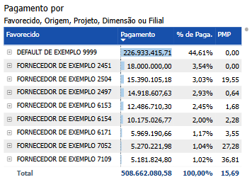 Pagamento por Favorecido, Origem, Projeto, Dimensão ou Filial¶